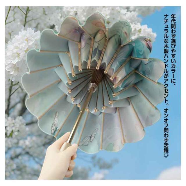 | 16本骨 折りたたみ傘 晴雨兼用 ・雨の日も晴れの日もこの1本で済みます。 ・傘生地がスムーズに開閉できる手開き傘。手指を挟みにくいよう配慮された安心設計。 ・強風でも折れにくい16本骨。より円に近い形になり、カバーできる範囲が広がるのも嬉しい! ・傘生地をまとめるバンドは、ボタン式。たたむ時も手間取らず、すっきりひとまとめ。 普段のお出かけはもちろん、旅行などでも重宝。 ・年代問わず選びやすいカラーに、ナチュラルな木製ハンドルがアクセント。オンオフ問わず活躍◎ | |