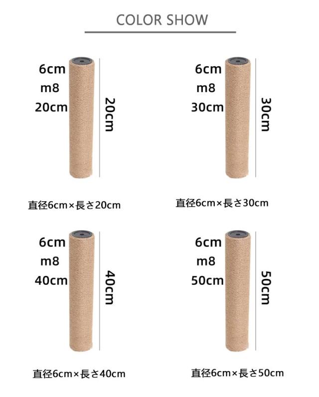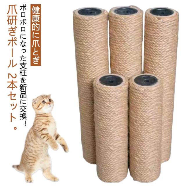 つめとぎ 交換用ポール 猫 【2個セット】 ネコ 爪とぎ ポール キャットタワー交換用ポール 爪研ぎポール 猫タワー 替え麻柱 交換支柱 麻縄巻き 支柱 ペット用品 猫用品 太さ6cm 爪研ぎ 選べる長さM8-20cm M8-30cm M8-40cm