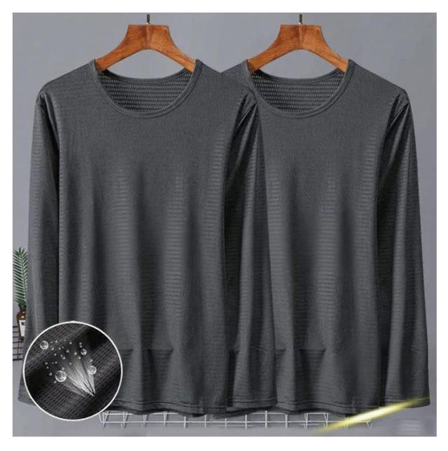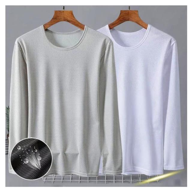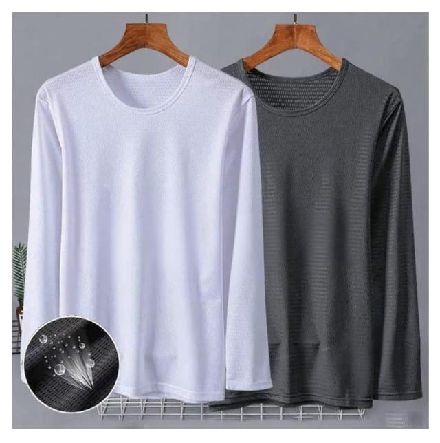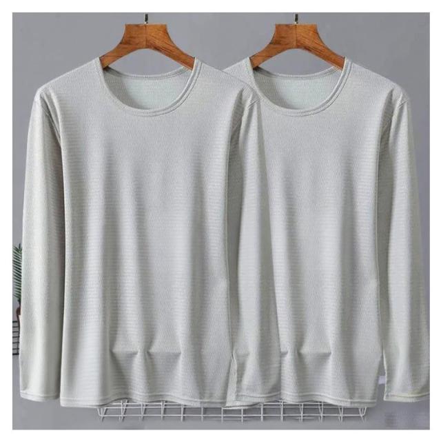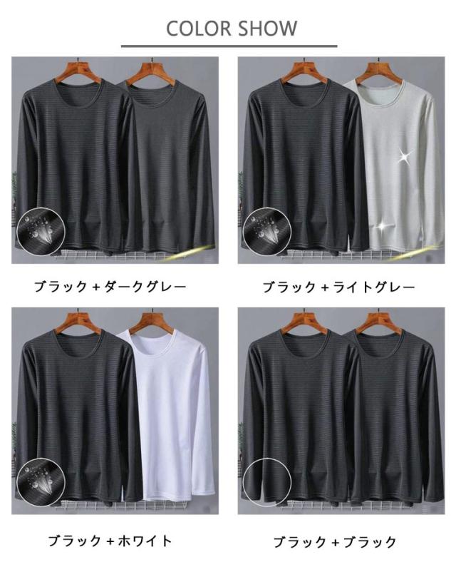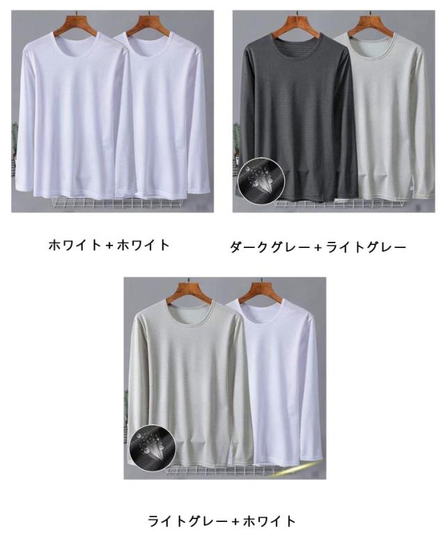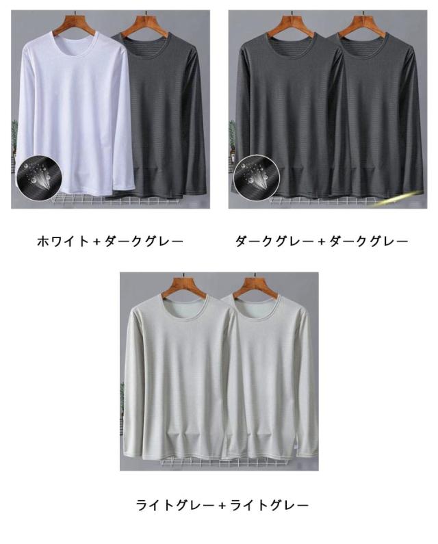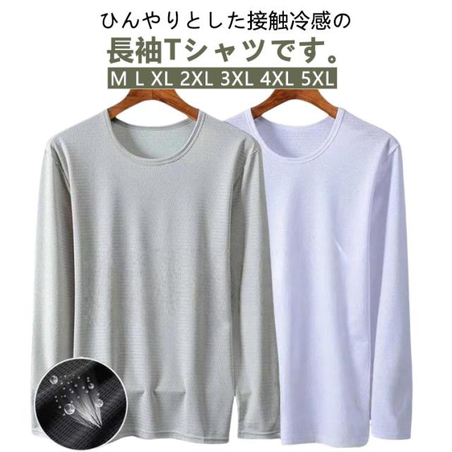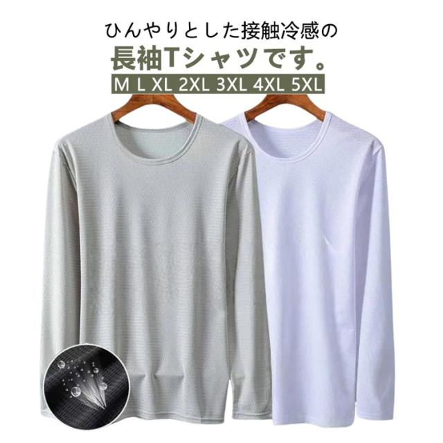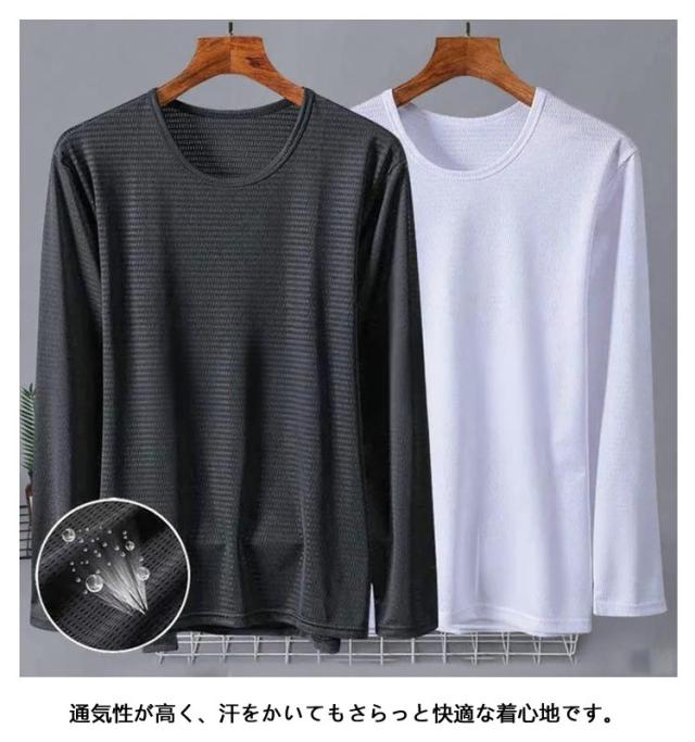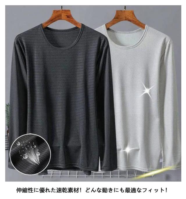 メンズ 夏 メッシュ 長袖 薄手 吸水速乾 接触冷感 2枚セット トップス 2枚セット 長袖tシャツ Tシャツ ストレッチ アイスシルク 涼しい UVカット 丸首 インナーシャツ 作業服 作業着 トレーニングウェア ゴルフ 野球 大きいサイズ バイク 釣り キャンプ