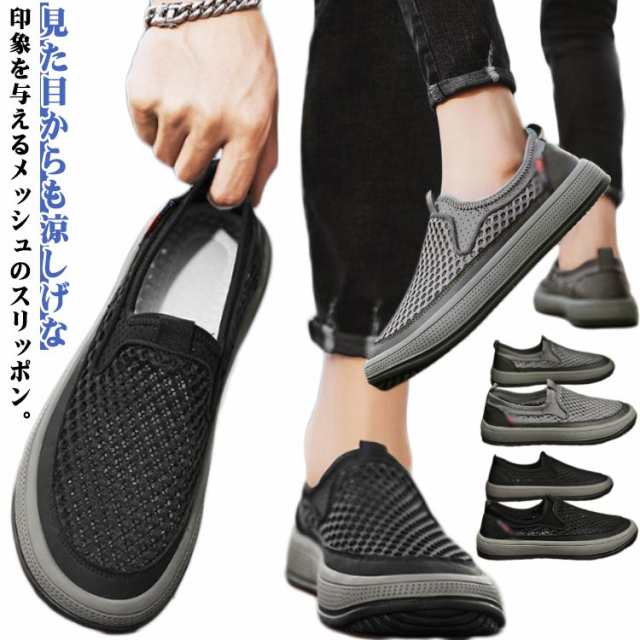 | 見た目からも涼しげな印象を与えるメッシュのスリッポン。 合成繊維をメッシュ状にしたアッパーを採用しているので、通気性抜群。 まるで素足のような感覚で、長時間履いても疲れにくい設計です。 サッと脱ぎ履きが容易にできるので、忙しい時やお出かけ先でも安心。 カジュアルからきれいめまでスタイリングを選ばない万能アイテムです。 グリップよく抜群の凸凹底、屈曲性に優れ、足ごたえよく、運転に最適のスリッポン。 | |