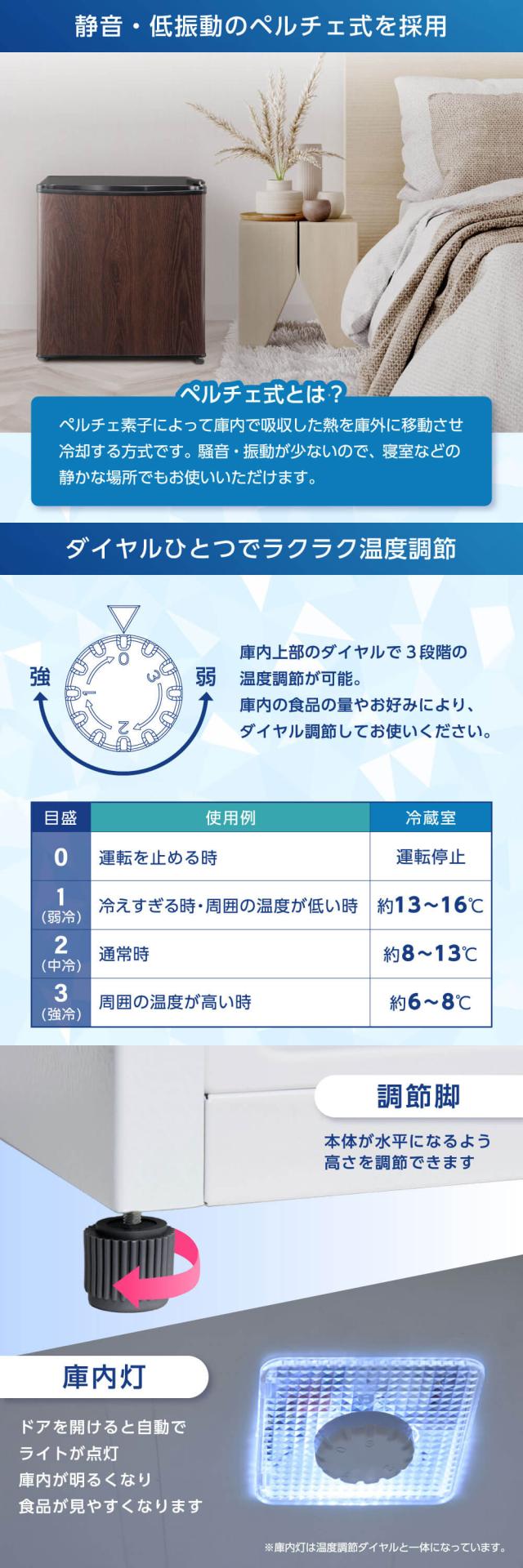 * 冷却方式:ペルチェ式(庫内温度調節つまみ付き)