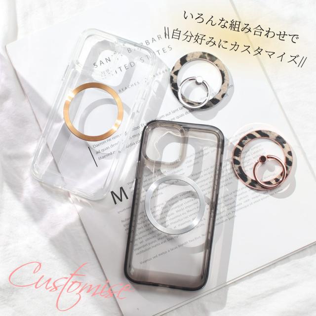 iphone ケース クリア リング付き iphone17 iphone16 iphone15 magsafe対応 マグセーフ リング ホルダー 大人可愛い ヒョウ柄 アニマル アイフォン 17 16 15 14 13 12 SE マグセーフ対応 スマホリング magsafe 17pro 16pro 15pro 13mini se3 スタンド メタリック 送料無料