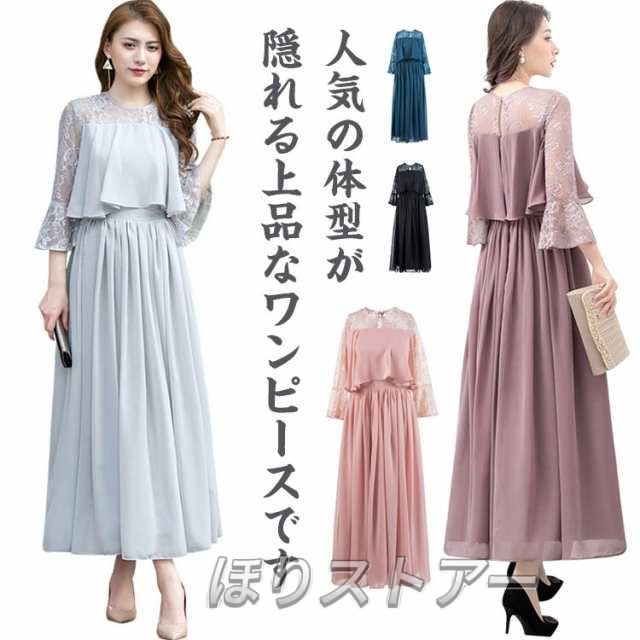 結婚式 ワンピース ロング丈 パーティードレス フォーマルドレス 袖あり 着痩せ 体型カバー レース 二の腕カバー ロングドレス 成人式 同窓会 お呼ばれ ミセス 20代 30代 40代 50代 母親 冬 秋 春 秋冬