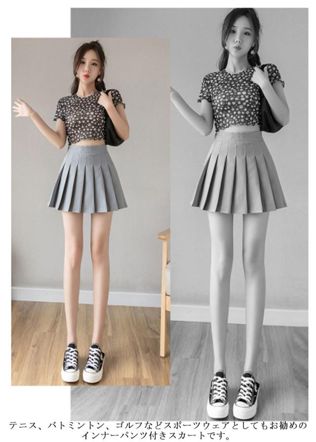 | 女子力アップ♪ミニ丈プリーツスカート。 甘さ抜群のショート丈Aラインシルエットは若い女性の気質にピッタリ♪ お腹周りスッキリしたプリーツデザイン、爽やかなスクール風ファッションを演出。 インナーパンツ付なので安心感たっぷり。 無地シンプルなデザインなので、トップスとの組み合わせは自由、春、夏、秋のロングシーズ活躍。 テニス、バトミントン、ゴルフなどスポーツウェアとしてもお勧めのインナーパンツ付きスカートです。 | |
