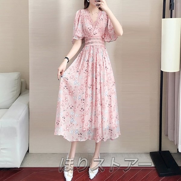 ワンピース レディース 40代 20代 夏 半袖 きれいめ 上品 シフォンワンピース ロング丈 花柄 大きいサイズ パーティードレス おしゃれ 韓国風 着痩せ 通勤 新品