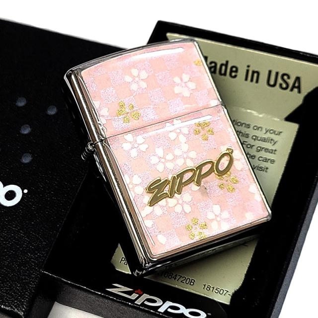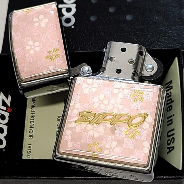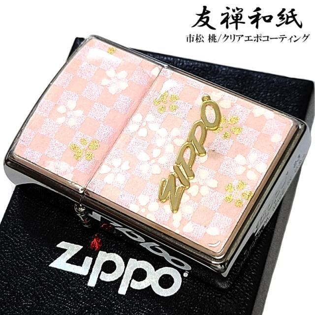 ZIPPO 和柄 友禅和紙 ジッポ ライター おしゃれ 市松模様 桃色 ロゴ 日本 和風 ピンク シルバー エポ盛り 可愛い レディース メンズ プレゼント ギフト