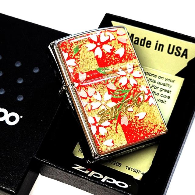 ZIPPO ライター 桜 和柄 ジッポ ロゴ 友禅和紙 赤 綺麗 さくら エポ盛り レッド 和風 日本 おしゃれ レディース メンズ ギフト プレゼント