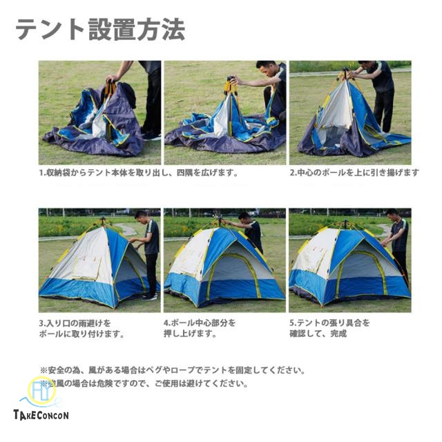 キャンプやアウトドアはもちろん、レジャーや運動会、プールや海水浴、庭キャンプなど幅広く使用できるお手軽テント。