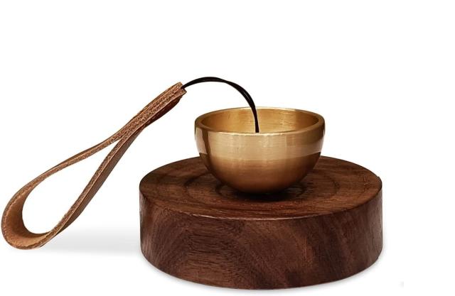 Tonbobo おりん ミニ 仏壇りん 真鍮製 高級なウォールナット 天然木 牛革 ペット仏具 ミニ台座 綺麗な音色 シンプル ミニおりんセット