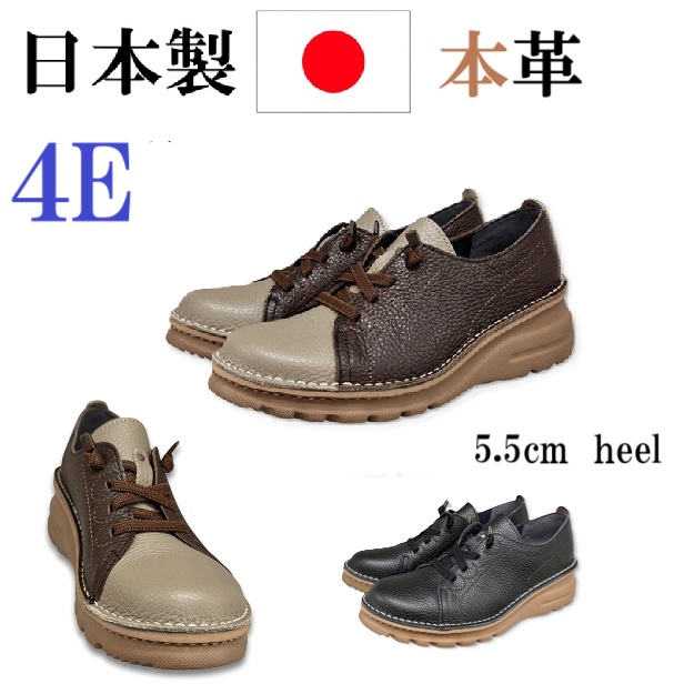 日本製 本革 コンフォートシューズ スリッポン4e ASWソール バイカラーゴムシューレース コンフォートシューズ 歩きやすい 痛くない 幅広 外反母趾