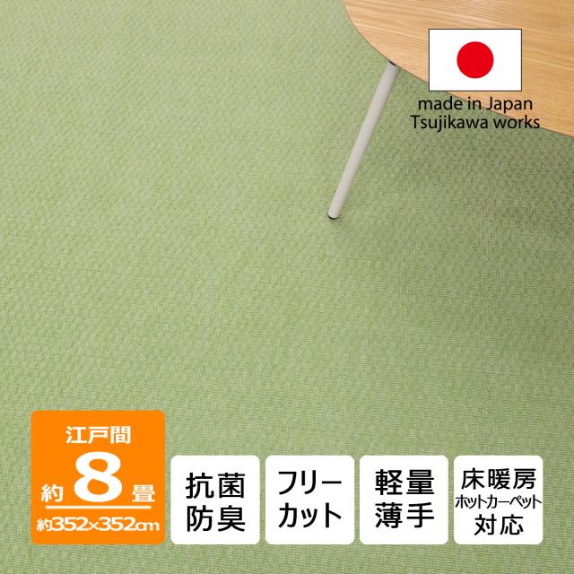カーペット 8畳 八畳 日本製 抗菌防臭 軽量薄手 ジェミニ 352×352cm 江戸間 8畳用 グリーン 緑 8帖 辻川産業株式会社 Tsujikawa