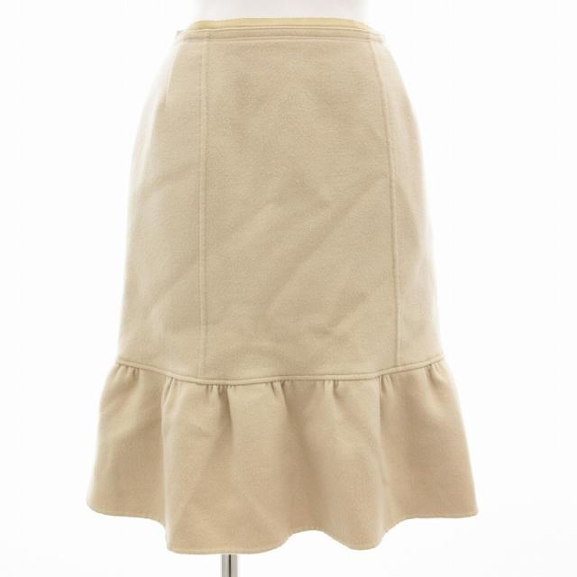 【中古】フォクシー ブティック FOXEY BOUTIQUE フレアスカート カシミヤ テープ ひざ丈 38 ベージュ /FF