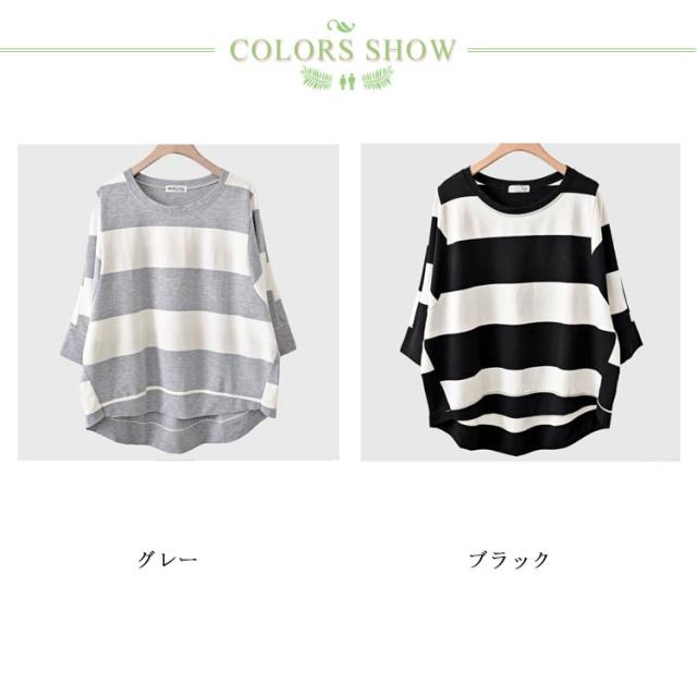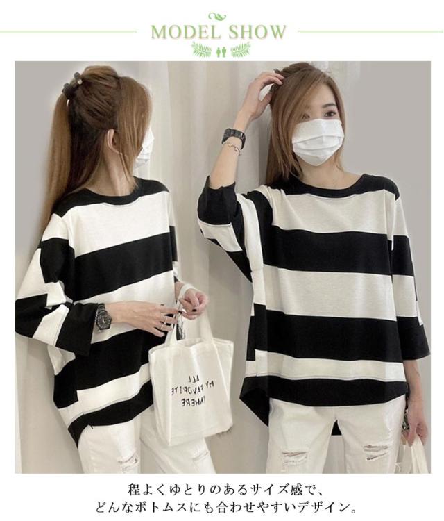 ロンT ボーダー Tシャツ レディース カットソー ティーシャツ 7分袖 長袖 Tシャツ ドルマンスリーブ ロング チュニック ビッグ ドルマン ノーブラ tシャツ 大きいサイズ きれいめ ゆる トップス ミドル丈 長い 送料無料