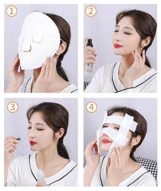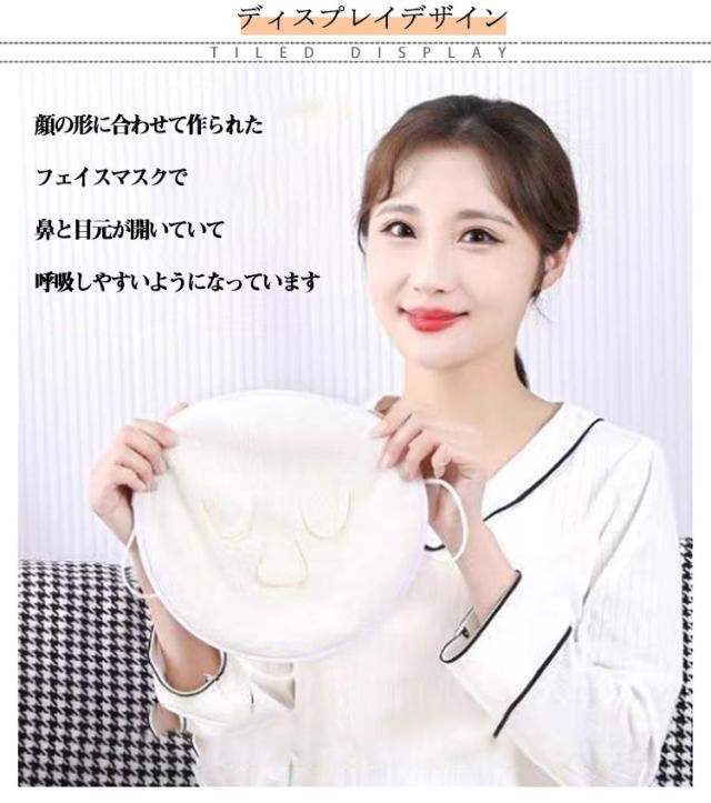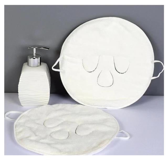 | ・繰り返し使えるフェイスタオルマスク ・温冷どちらでも使い分けて使用できる ・顔の形に合わせて作られたフェイスマスクで、鼻と目元が開いていて呼吸しやすいようになっています。 | |