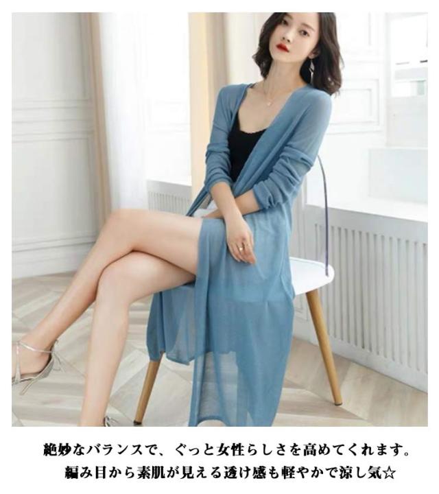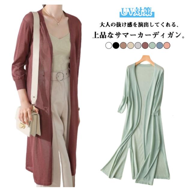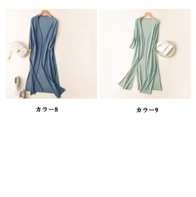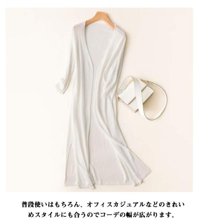 ニット ロング カーディガン シースルー レディース 冷感 7分袖 サマーカーディガン 透かし編み ロングカーディガン ミディアム丈 シャリ感 ボレロ 肩掛け ケープ フレア トップス ライトアウター 日焼け防止服 UV対策 送料無料