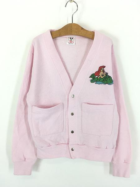 キッズ 古着 USA製 Disney アリエル フロッキー ワッペン スウェット カーディガン L 14歳以上位 古着