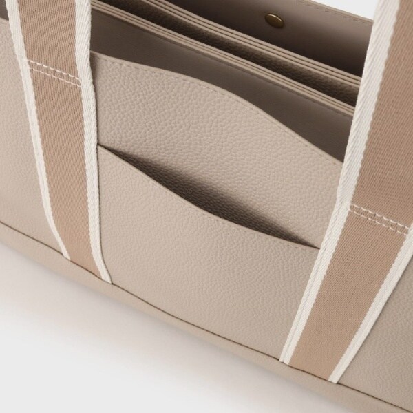 ・持ち手部分はライン入りテープを使用し、ベーシックアイテムながらさりげないデザインアクセントに