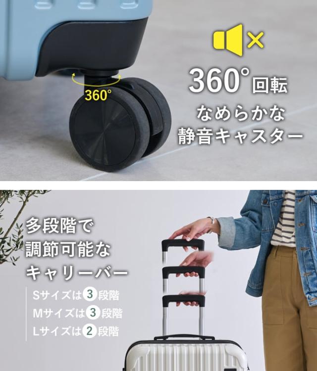 人気北欧ブランド「SCANDINAVIAN FOREST」からスーツケース登場。 マチ拡張機能付きでファスナーを開くだけで容量がアップ! 旅行先や出張先で荷物が増えても安心の大容量設計です。 傷が目立ちにくいエンボス加工が施された軽量で丈夫な素材を使用して、 可愛いハリネズミのロゴがアクセントになったシンプルなデザインは 男女問わず幅広い世代におすすめです。 1泊〜10泊まで日程に合わせて選べる3サイズ展開! 高品質のファスナーで開け閉めもスムーズ!キャスターは360度回転の静音設計。 お土産などを引掛けられるサイドフックやカップホルダー付きで使いやすい機能満載!