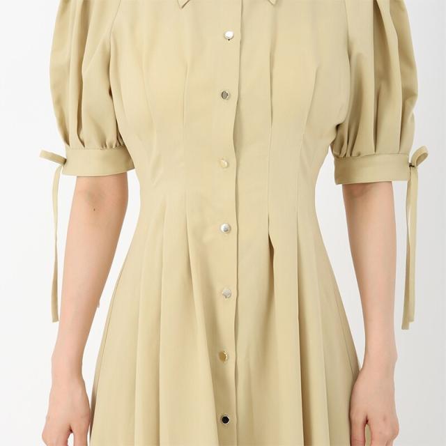 ふっくらとしたボリュームのあるパフ袖とリボンが可愛らしいシャツワンピース。ウエストをシェイプさせたフィットフレアなシルエットで、エレガントなムードを演出してくれます。背面のシャーリングもさりげないポイント。シンプルながらも上品な華やかさのあるスタイリングに決まる1着です。■fabric透け感[無し]裏地[無し]伸縮性[やや有り]生地の厚さ[普通]