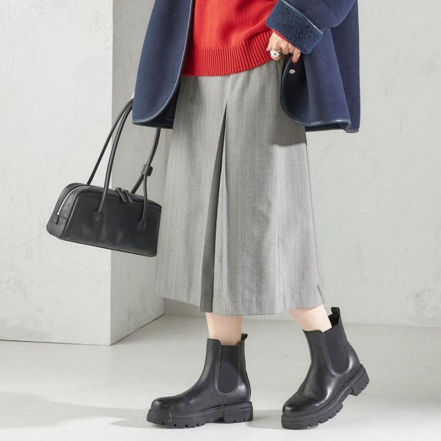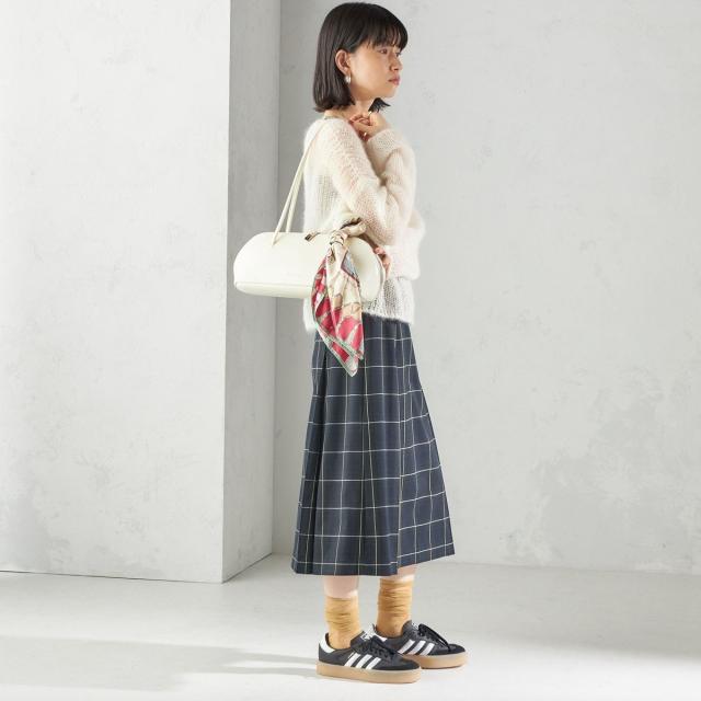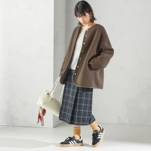 足もとはソックス+ローファーやスニーカーでカジュアルにも、ブーツで大人っぽくしたスタイリングでも素敵に決まります。