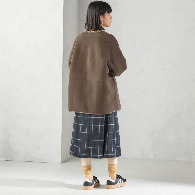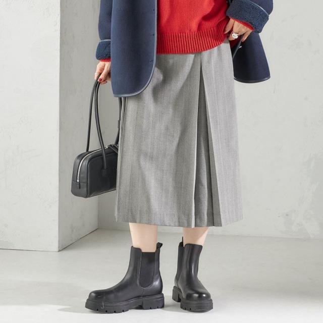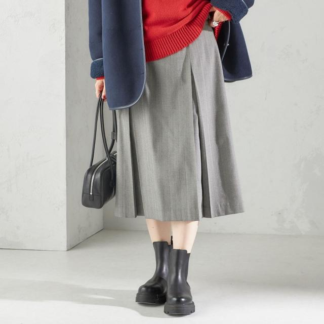 すとんとした広がりを抑えたボックスプリーツスカートです。