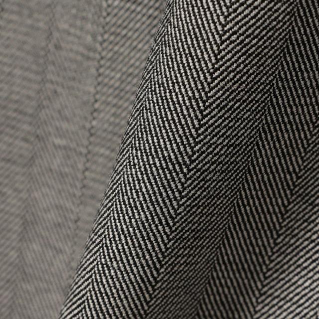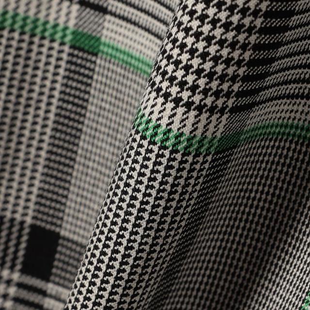 ポリエステル・レーヨン素材で作ったオリジナルのチェック・ヘリンボーン生地を使用。