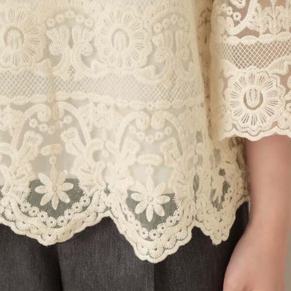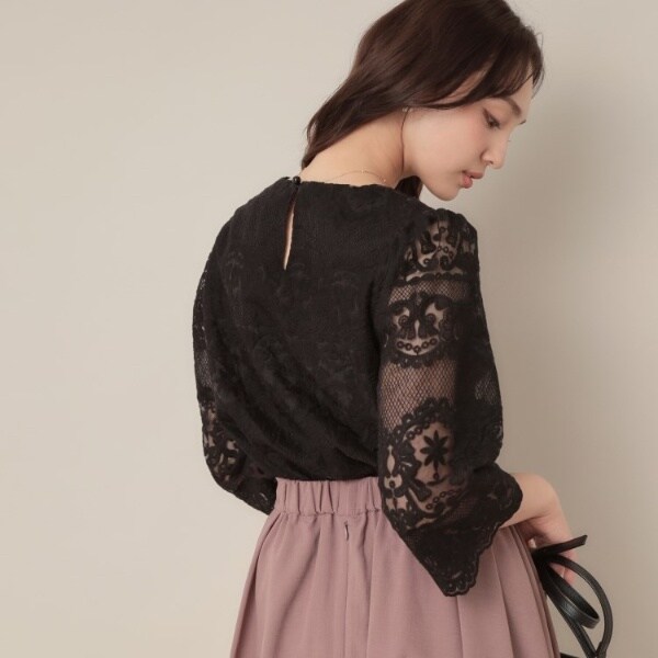 【一枚で着映える・高見え】刺繍レースフレアー袖ブラウス