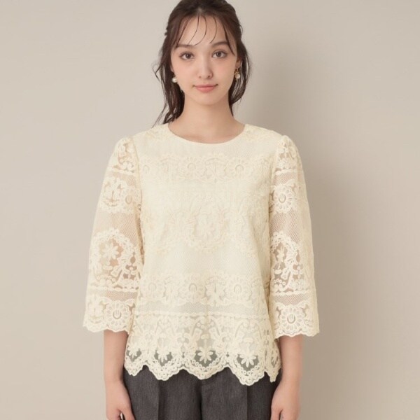クチュールブローチ(Couture Brooch)/【一枚で着映える・高見え】刺繍レースフレアー袖ブラウス