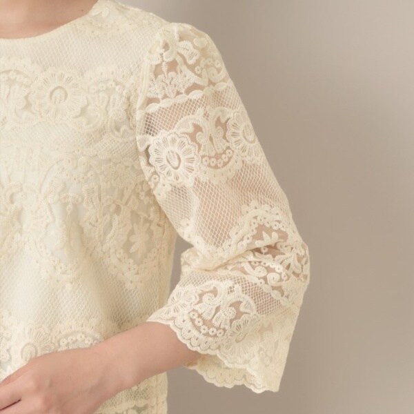 ・saori(153)高級感のある刺繍レースが魅力的なブラウスです◎長すぎない8分丈で着やすく、二の腕も可愛くカバーできるのが嬉しいポイントに!パンツはもちろんフレアスカート等に合わせるのもおすすめです!