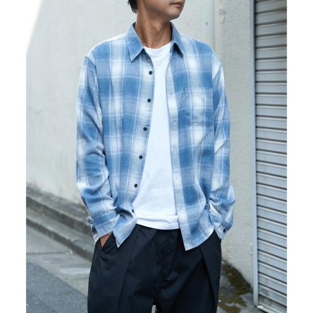 レギュラーカラーのベーシックなシルエットに、グラデーションの効いたオンブレチェック柄を採用。