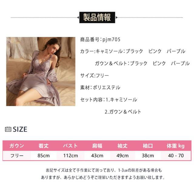 | カラー | キャミソール:ブラック ピンク パープルbr> ガウン&ベルト:ブラック ピンク パープルbr> |