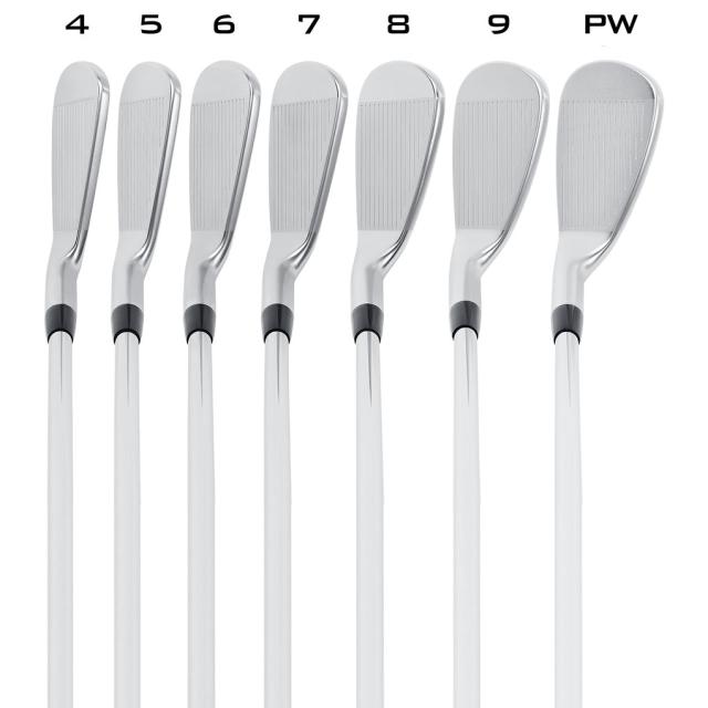 タングステンとCMCコンポーネントをロフト角に合わせて配置することで、各アイアンの正確な重心位置を実現。この漸進的な重心シフトにより、ロングアイアンでは打ち出し角が大きくなり、スコアリングアイアンではバックスピンがコントロールされ、セット全体を通して一貫したギャップを維持しながら、よりタイトな分散性を実現します。
