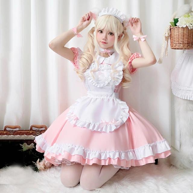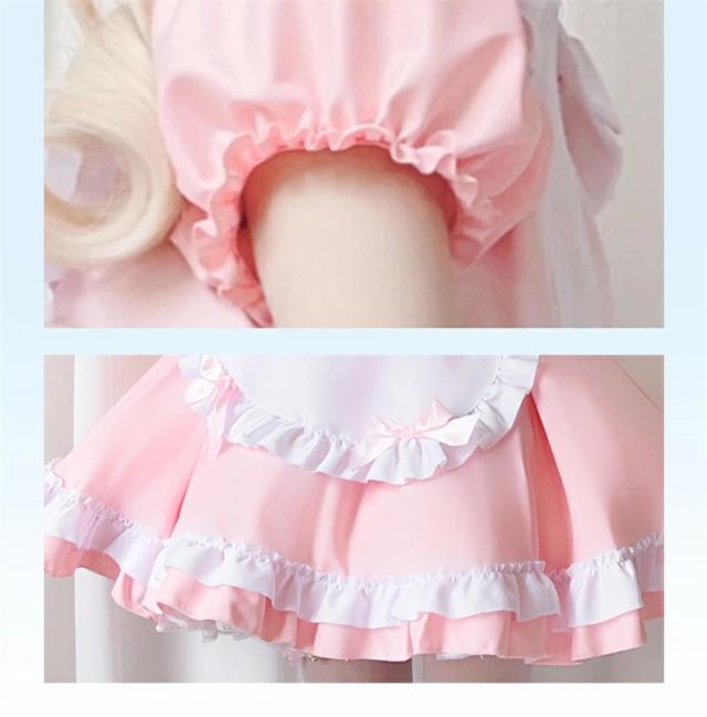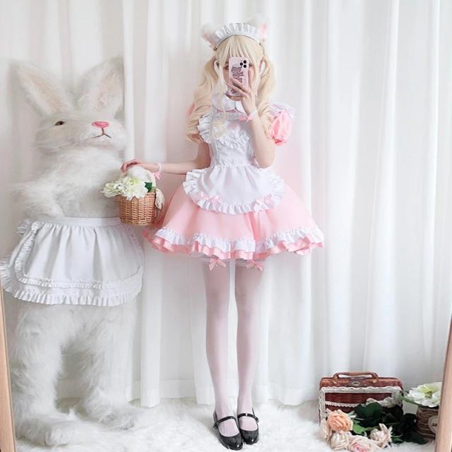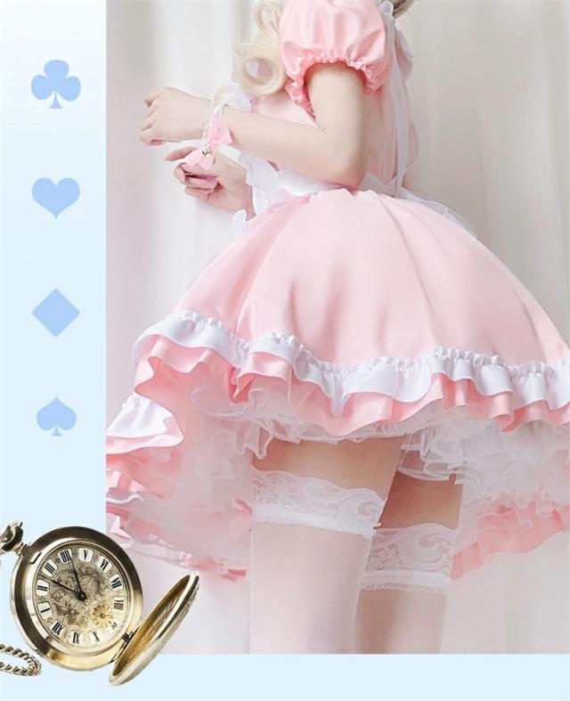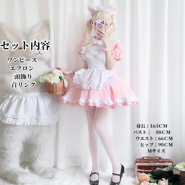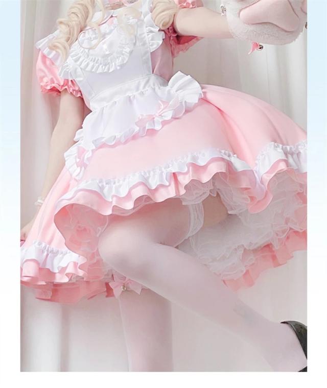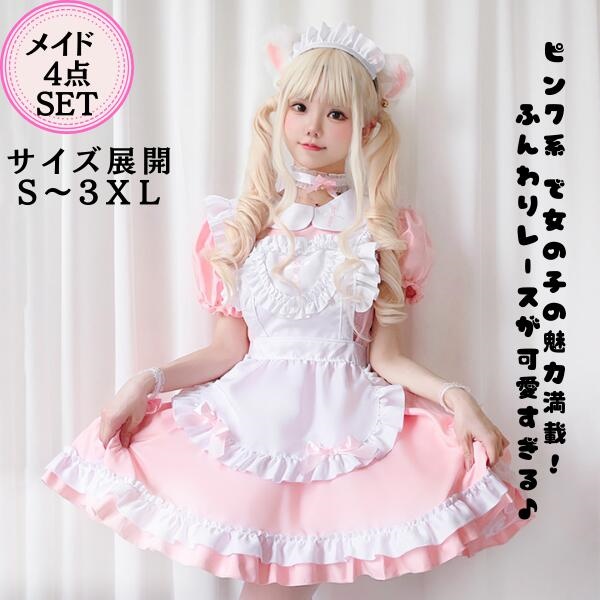 コスプレメイド 服 風衣装 仮装 女装 フリル ロリータ かわいい カチューシャ 付き ロリータワンピース アニメ かわいい コスチューム コスプレ衣装 大人用 ワンピース 仮装パーティー 仮装 結婚式 余興 ピンクハロウイン