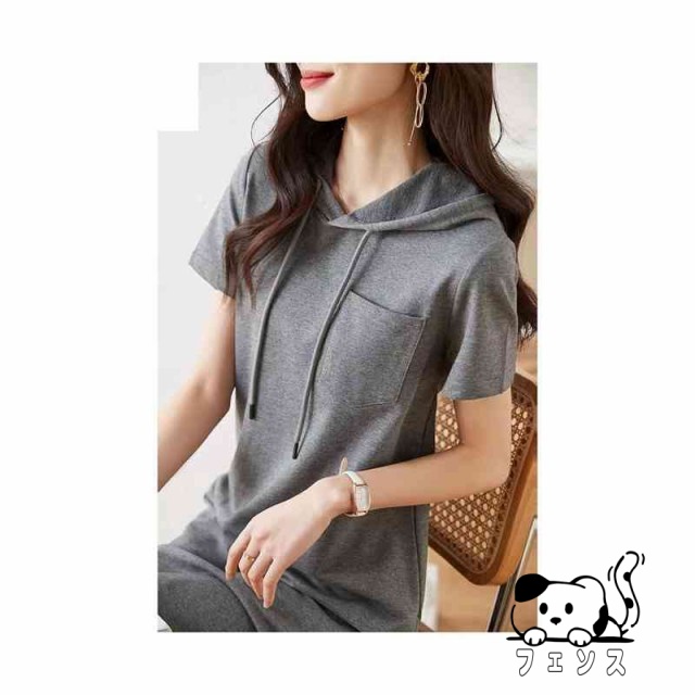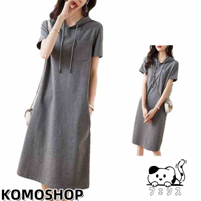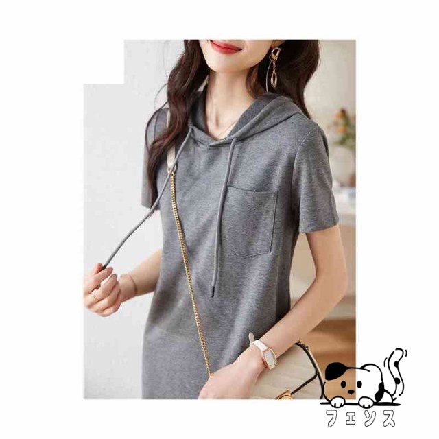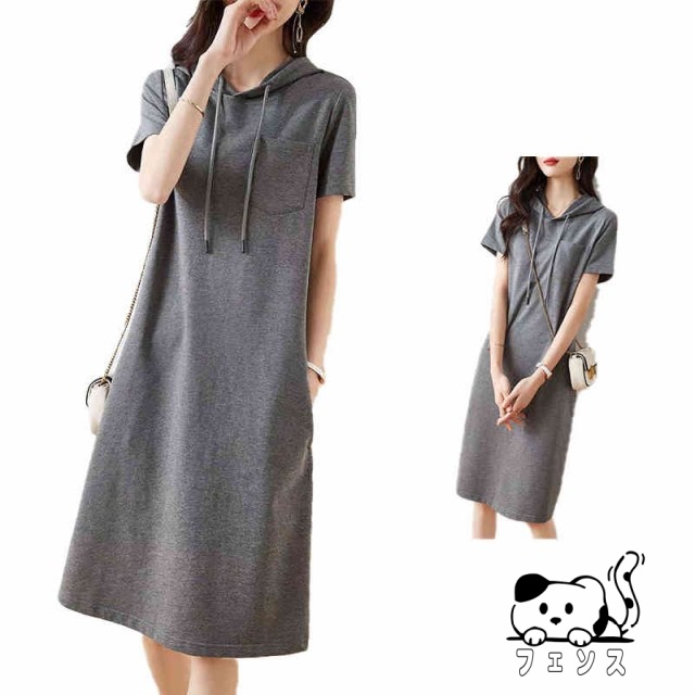 フード付きワンピース 送料無料 レディース 半袖ワンピース トレーナー ロングワンピース シャツワンピース 無地 Tシャツワンピ パーカーワンピース 夏ワンピース ルームウェア 部屋着 フード付きロングワンピース おでかけ