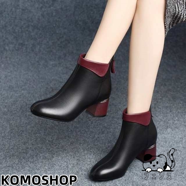 ブーティー アンクルブーツ アーモンドトゥ ミドルヒール チャンキーヒール バックファスナー レディース 靴 くつ シューズ 太ヒール レザー調 フェ