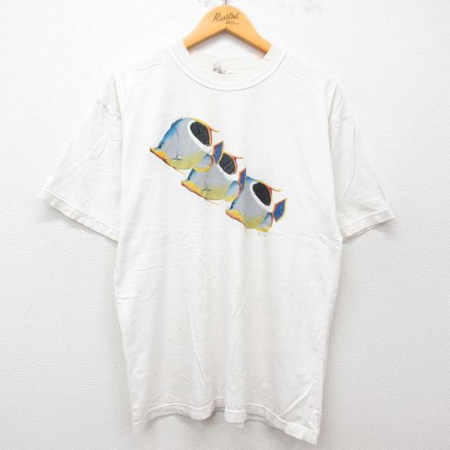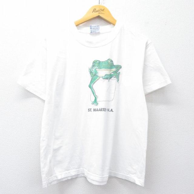 【商品名】 L★古着 BVD 半袖 ビンテージ Tシャツ メンズ 90年代 90s メッセージ コットン クルーネック 白【spe】