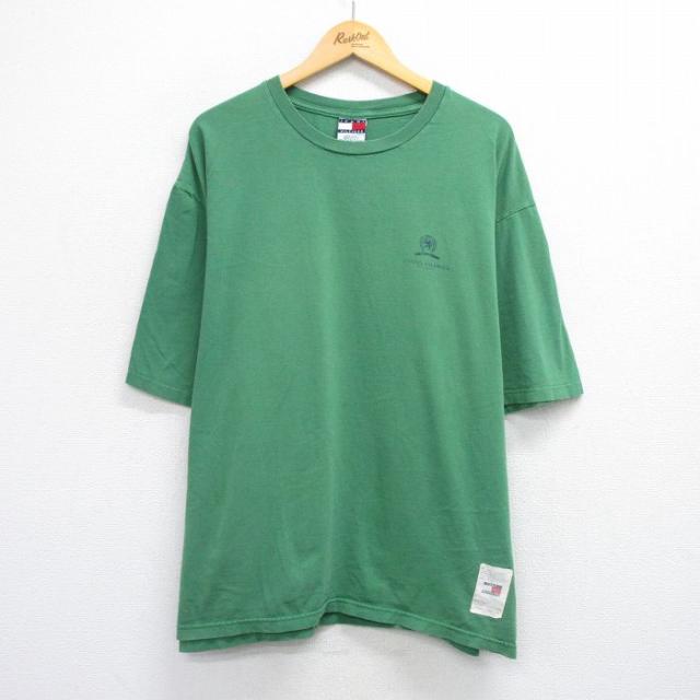 【商品名】 XL★古着 トミーヒルフィガー 半袖 ビンテージ ブランド Tシャツ メンズ 90年代 90s ワンポイントロゴ 大きいサイズ コットン クルーネック USA製 緑