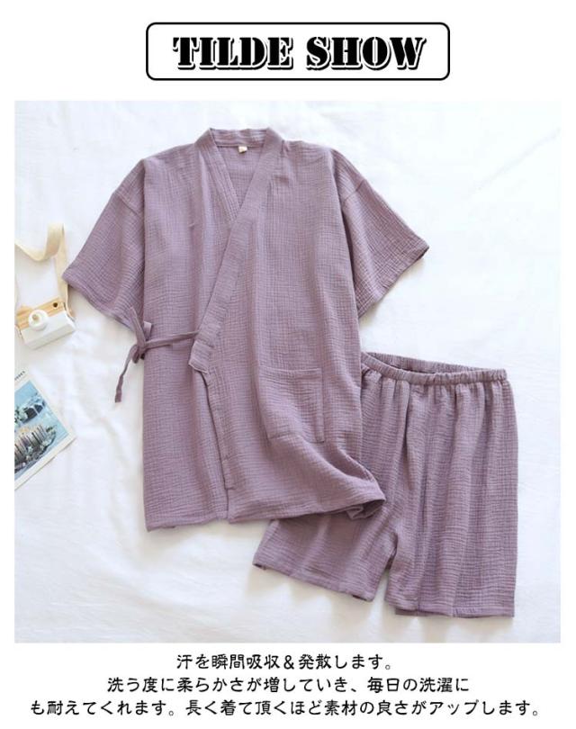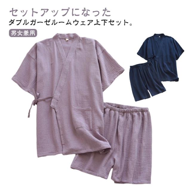 夏 作務衣 和服 綿 甚平 上下セット 半袖 パジャマ ショートパンツ メンズ 春 前開き パジャマ 無地 おしゃれ 甚平 レディース 浴衣 じんべい 花火大会 夏祭り ルームウエア 部屋着 薄手 ダブルガーゼ 2重ガーゼ 吸水 速乾 通気性 ポケット付き セットアップ