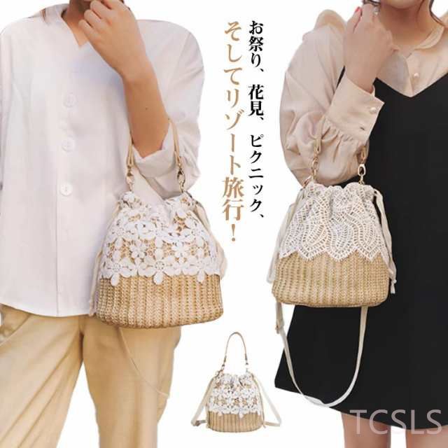 かごバッグ ショルダー ストローバッグ バケツ 浴衣 巾着 バッグ 巾着バッグ ショルダーバッグ レディース 斜めがけ 軽い 軽量 大きめ ペーパーバッグ 手提げ 大容量 夏 リゾート 旅行 カゴバック 籠バッグ 花柄 リーフ柄 サマーバッグ