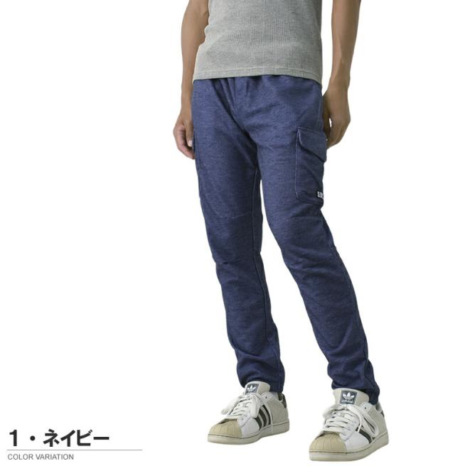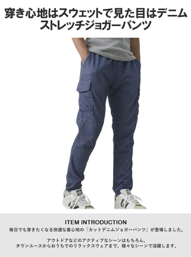 ジョガーパンツ イージーパンツ メンズ デニム調 カットデニム カーゴポケット ストレッチ ウエストゴム カーゴパンツ【B8J】【パケ1】