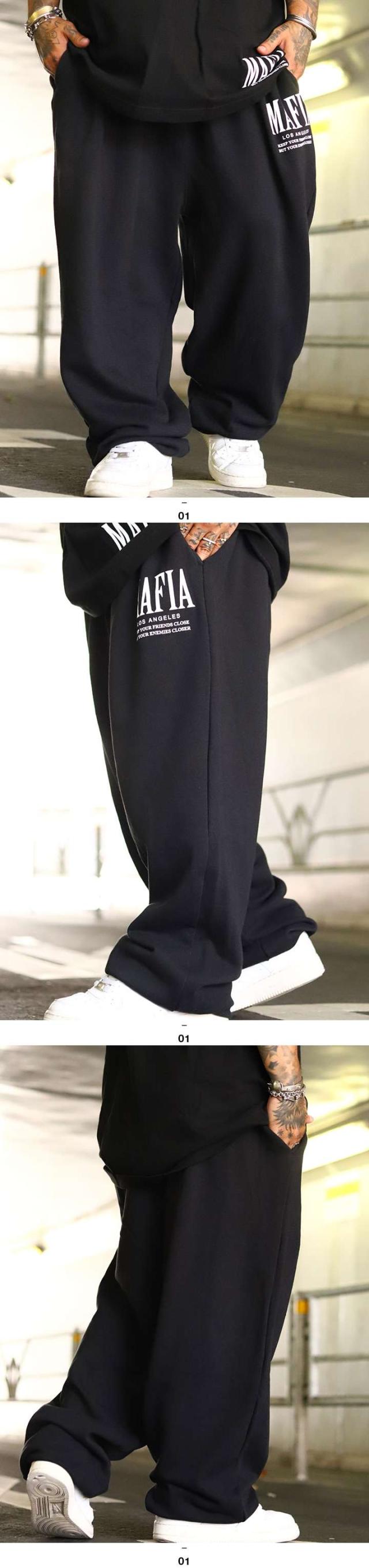「マフィアの名言」をドロップした、ロング丈のスウェットパンツ。