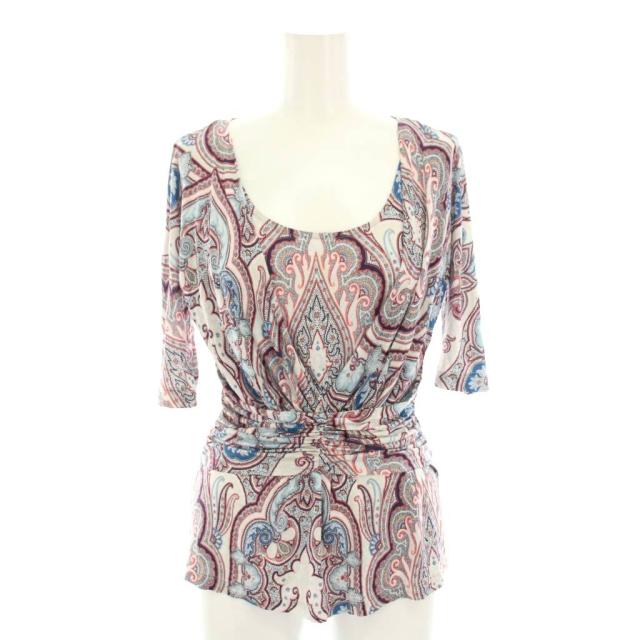 【中古】エトロ ETRO シャツ ブラウス 五分袖 総柄 38 白 ホワイト 紺 ネイビー 赤 21-18921-4802 レディース
