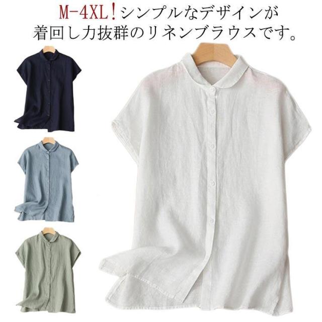 前開き ビッグシャツ ブラウス レディース M 半袖 涼しい 夏 カジュアル ゆったり 綿麻ブラウス シャツブラウス 2XL リネン シャツ コットン
