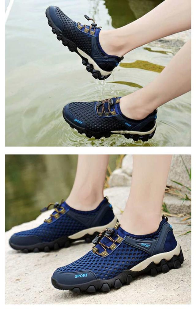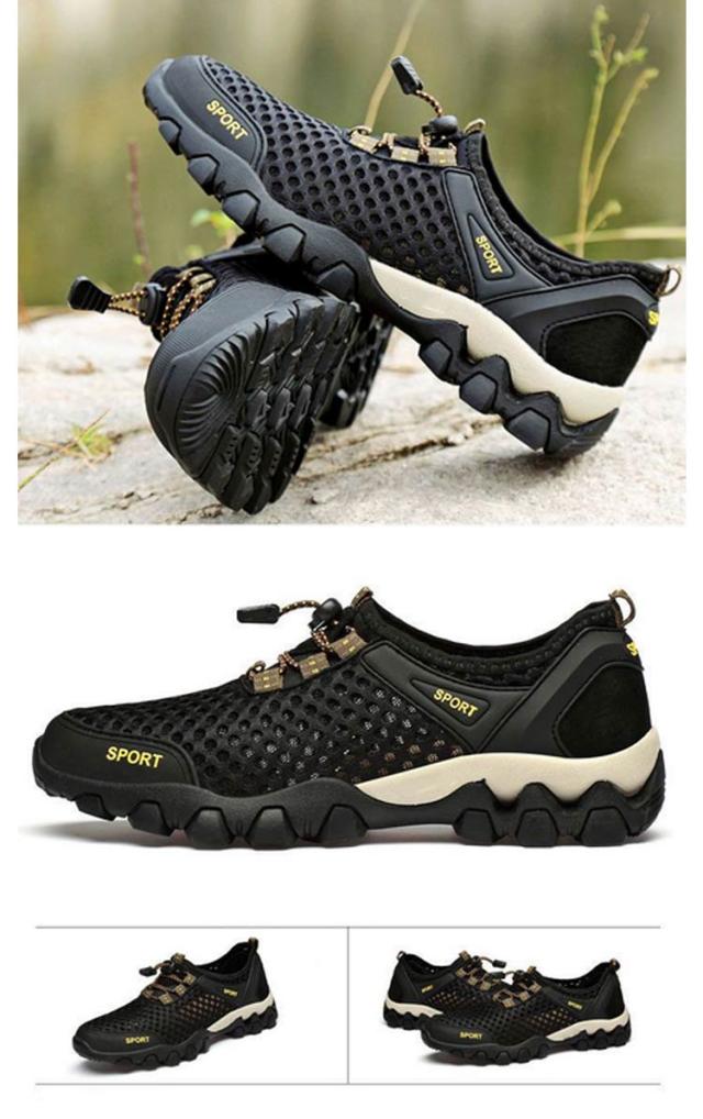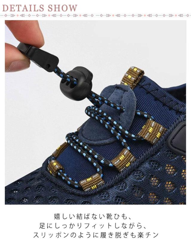 | 軽量・防臭・通気性抜群のメッシュスニーカー。 歩くたびスニーカーの中を風が通り抜けるような涼しさ、素足で履くと新感覚の清涼感。 弾力性のよいゴムソールと凸凹設計で、衝撃をしっかり吸収し、足や膝を守りつつ、疲れにくく、歩きやすい。 グリップ力抜群の凸凹アウトソール、山登りなどアウトドアシーンにも重宝します。 夏のウォーキングやランニング、ジムなどスポーツに大活躍に間違いなし。 嬉しい結ばない靴ひも、足にしっかりフィットしながら、スリッポンのように履き脱ぎも楽チン。 速乾性のメッシュシューズ、川や海、ビーチなどシーンも大活躍。 | |