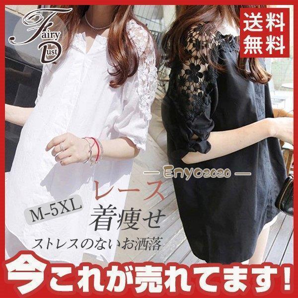 tシャツ 七分袖 レース スラブコットン 切り替え シースルー 袖リボン 無地 レディース 春夏 カットソー トップス ブラウス 薄手 白 黒