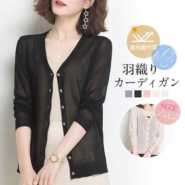 カーディガン UVカット Vネック 薄手 レディース 紫外線対策 日焼け予防 接触冷感 羽織り 無地 OL通勤 長袖 夏 前開き