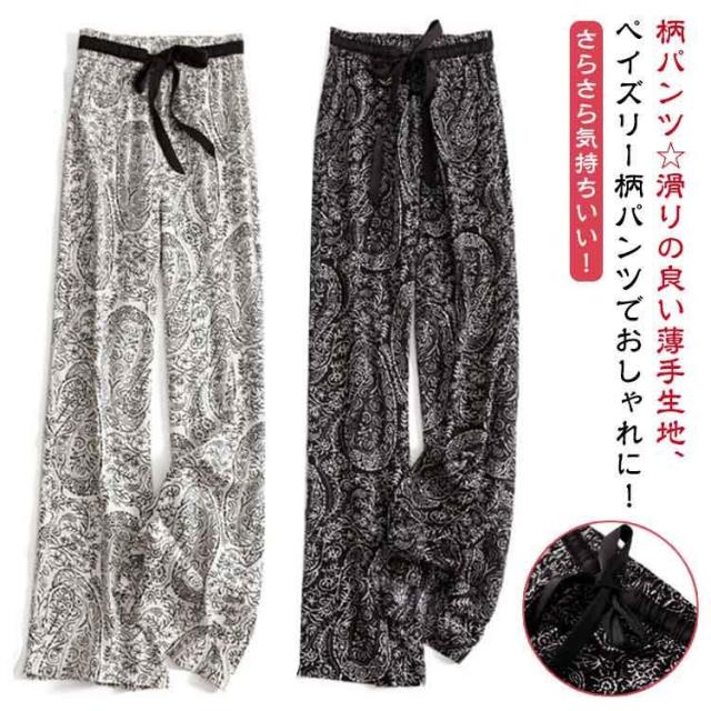 総柄プリント レディース パンツ 柄パンツ ワイドパンツ イージーパンツ リラックス ペイズリー柄 ウエストゴム ゆったり 大きい
