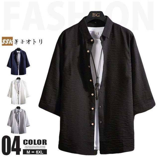 七分袖シャツ メンズ 夏服 無地シャツ カジュアルシャツ 7分袖 涼しいシャツ 無地 大きいサイズ 薄手 大きいサイズ 通勤 20代 30代 40代 50代