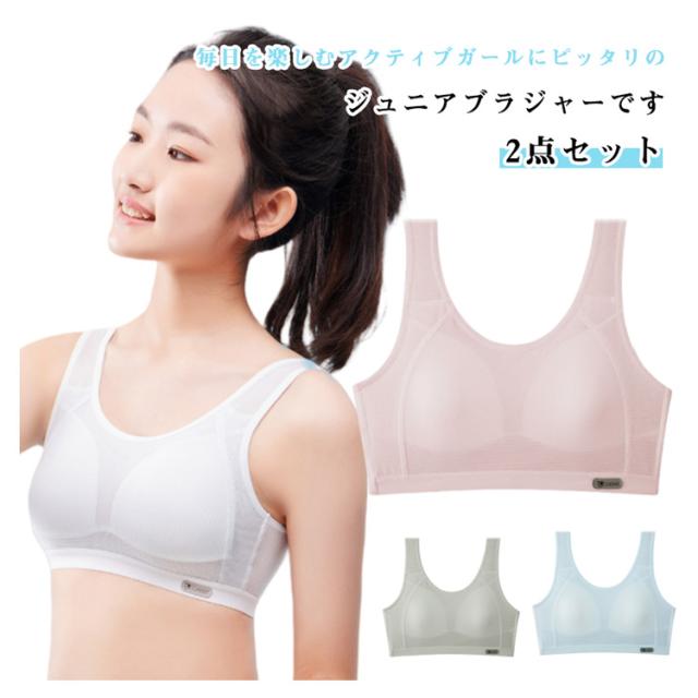 子供 ブラ 吸汗速乾 ハーフトップ ノンワイヤー 2点セット 体育 キッズ ナイトブラ ファーストブラ 女の子 肌着 ハーフトップ スポーツブラ インナー ジュニアブラジャー 下着 ガールズ 春夏 小学生 シームレス 中学生 部活 涼しい 無地 メッシュ