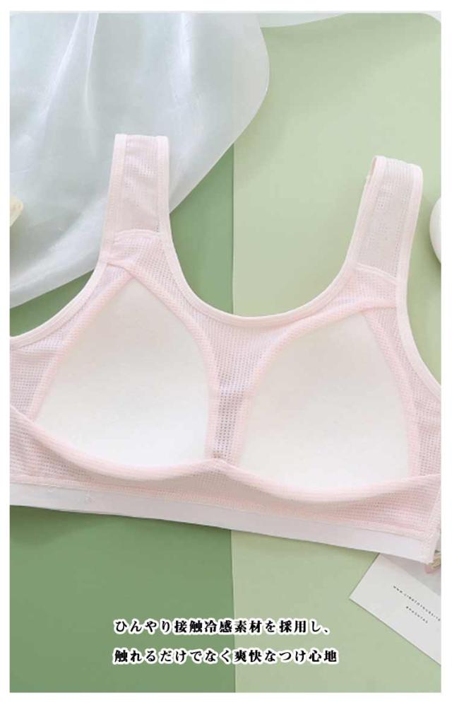 | 毎日を楽しむアクティブガールにピッタリのジュニアブラジャーです。 伸縮性・通気性にも優れていますので大変嬉しいアイテムです ふんわりとした質感の気持ちいい着心地で運動時もストレスフリー ひんやり接触冷感素材を採用し、触れるだけでなく爽快なつけ心地 体への負担が少ないので運動・部活・スポーツ・ダンス・普段着・睡眠時など非常に快適に過ごすことができるでしょう。 春夏秋冬、季節や流行りを問わず1年中を通して長くお使いいただける商品になっております。 | |